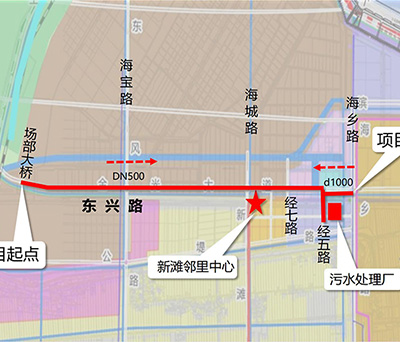 蘇港公司污水收集處理能力提升工程-東興路段一期(經七路-海鄉路)位于東興路北側,西起經七路,東至海鄉路,全長約2.5公里,